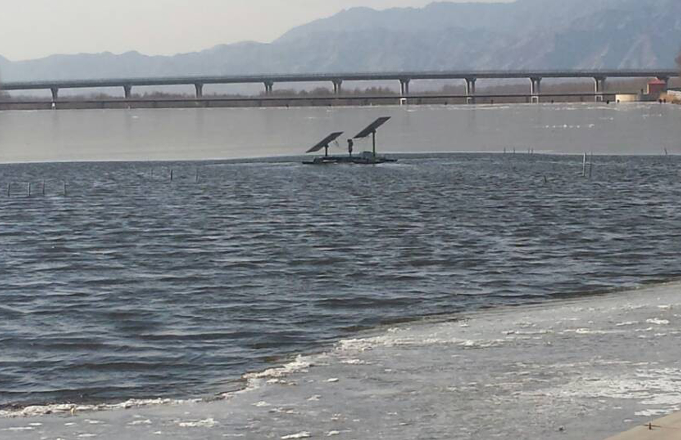 北京延慶項(xiàng)目采用太陽(yáng)能水循環(huán)復(fù)氧控藻設(shè)備實(shí)現(xiàn)將太陽(yáng)能轉(zhuǎn)化為機(jī)械能,產(chǎn)生巨大動(dòng)水作用,實(shí)測(cè)在天然水體的動(dòng)水范圍達(dá)到水面10000平方米。強(qiáng)勁的動(dòng)力為水體注入活力,即便在寒冷冬季,動(dòng)水效率也能滿足大范圍的控冰要求。