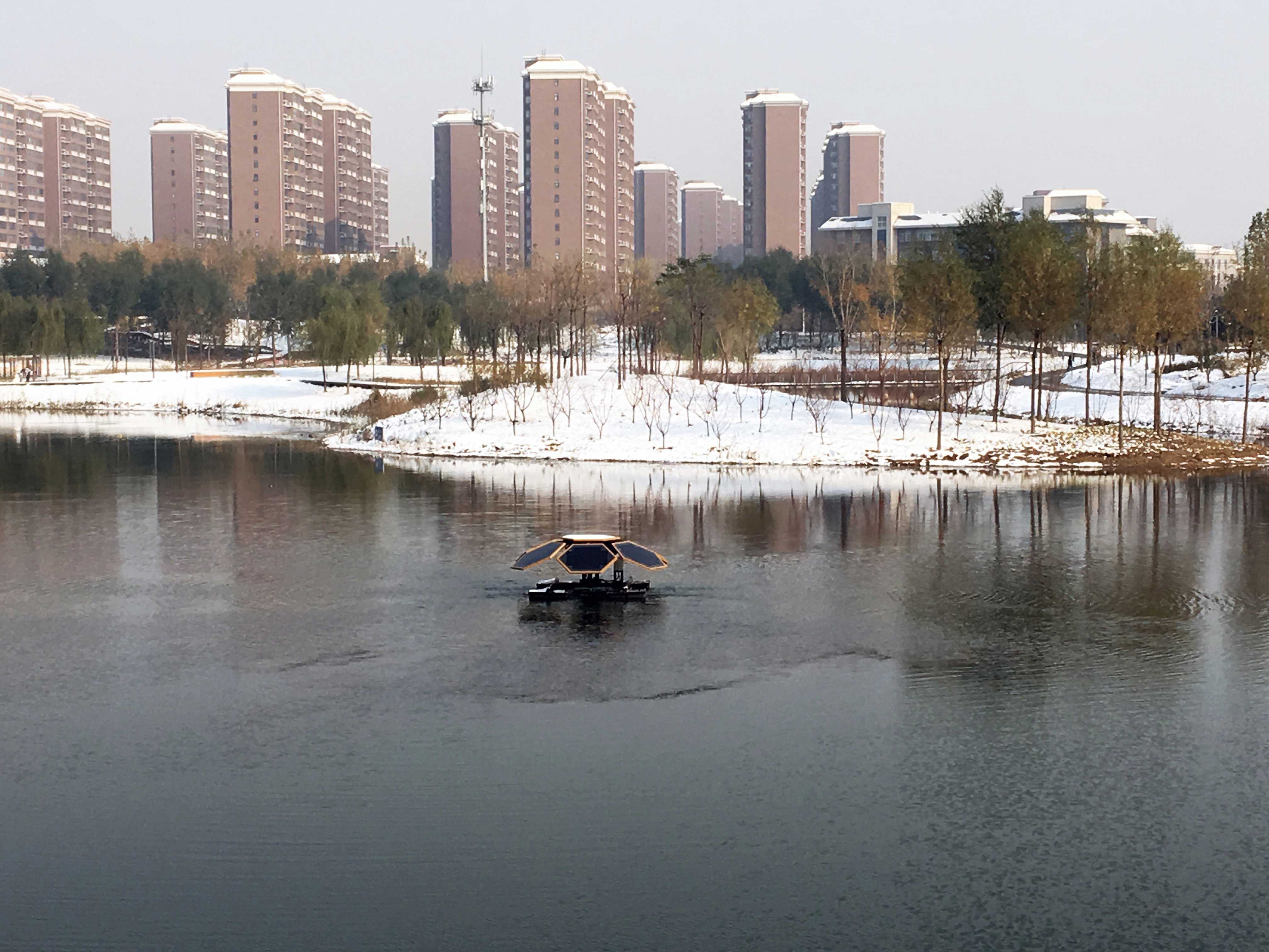 太陽能水循環(huán)復氧設備良好的冬季水體控冰功能,為魚類等水生動物在冬季生存提供充足的溶解氧,促進水生態(tài)系統(tǒng)安全越冬。